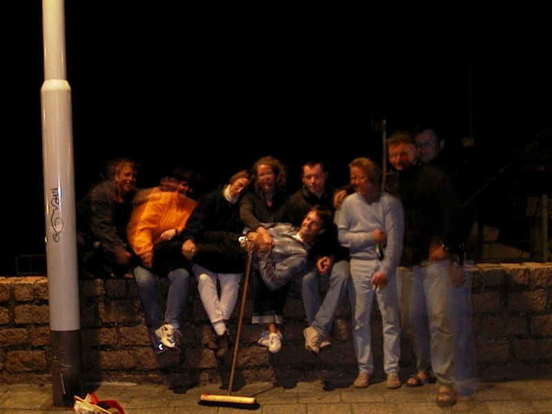 Auf der Mauer: Angi, Heike, Katja, Gudrun, Holger, Martin, Christian, Udo